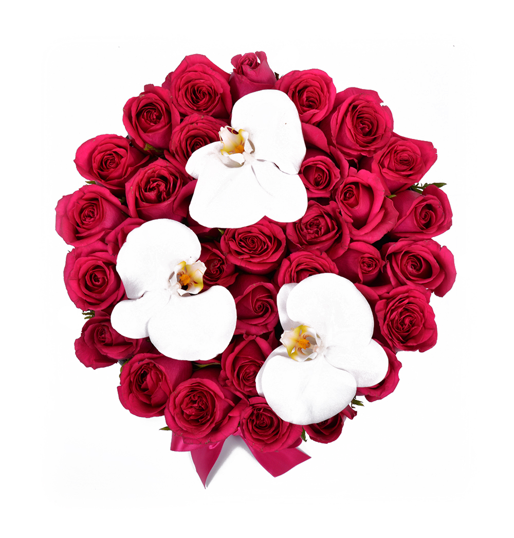 | 323a | Fuchsia Roses in Black Round Box with Orchid | 40-50 | Dia 28 x 20 | 570 |