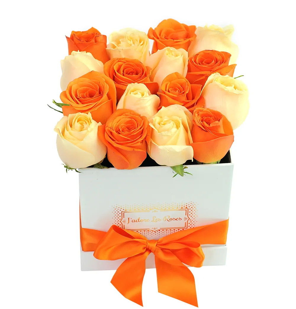 | 135 | Mix (Peach & Orange) Roses in White Small Square Box | 16 | 15X15X15 | 275 |